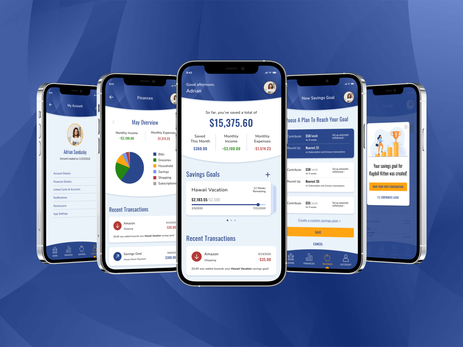 A responsive mobile app that displays data on the user’s finances (how much money they spend and on what), and tells them what they can do to cut costs and save money in a certain amount of time.